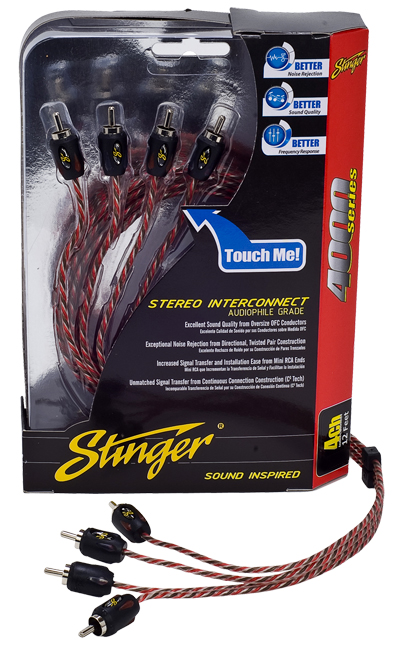 SET CABLES RCA (DOBLE) TRENZADO ALTA CALIDAD STINGER SERIE 4000 PARA AMPLIFICADORES DE 4 CANALES 5,2 MTS. Excelente calidad de sonido por sus conductores sobre medida OFC Excelente rechazo de ruido y protección contra interferencias por su construcción de pares trenzados direccionales. Incomparable transferencia de señal por su construcción de conexión continua.